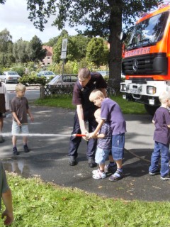 Nachwuchs kam voll auf seine Kosten: Hüpfburg, Spielmobil, Sackhüpfen, Wasserspritzen der Freiwilligen Feuerwehr oder Aktionen der Pfadfinder faszinierten die jungen Dorfbewohner.